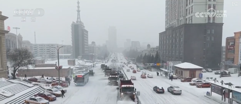 黑龙江多地遭遇强降雪。在鹤岗市城区主次干道,城管部门采取“机械为主、人工为辅、边下边清”的作业模式,调配多类型清雪机械组建作业梯队,清理积雪。