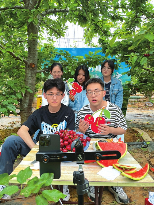 山西师范大学爱心助农团队在运城市绛县大交镇学习并开展助农直播。