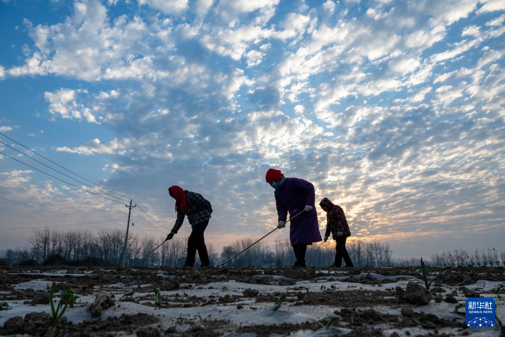 12月7日,农民在河南省商丘市夏邑县会亭镇张桥村大蒜种植基地劳作。