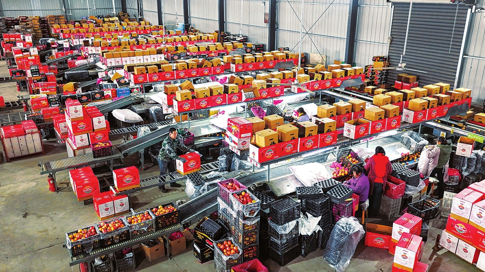 12月5日,平陆县山西艾哲果品有限公司生产车间,工作人员正在智能化流水线上对苹果进行分拣装箱。眼下正值该县苹果出口旺季,当地6家果品出口企业满负荷生产,订单覆盖多个国家和地区,有效推动果农增收和产业升级。