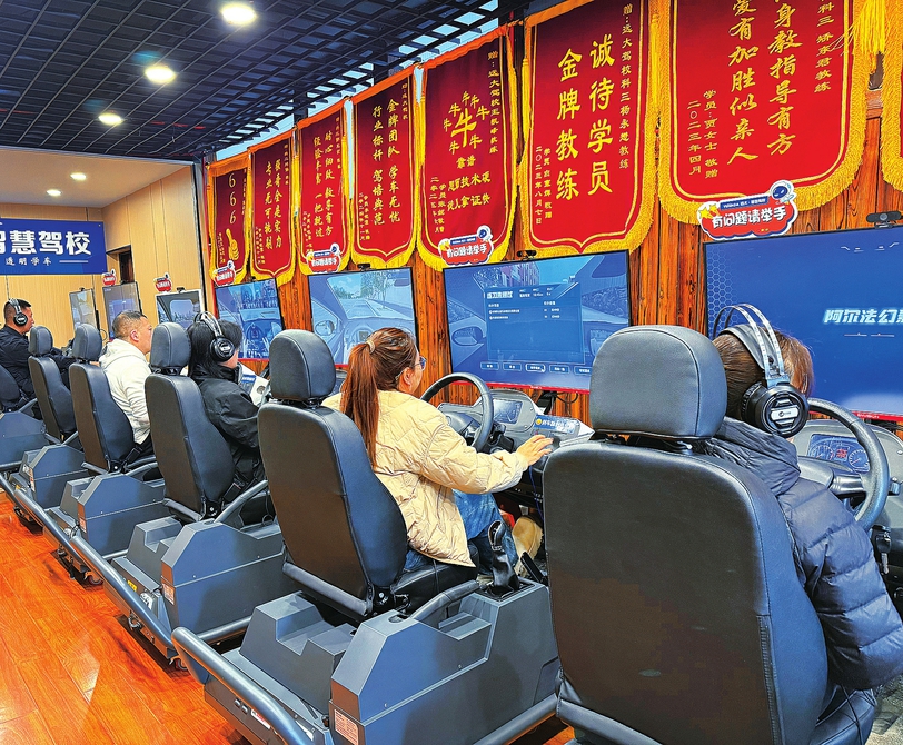 据驾校工作人员矫东君介绍,他们创新采用“AI智慧学车+实车教学”模式,压缩了培训周期:“传统驾校C1驾照培训最快需45天,我们能缩短至35天,例如科目二练习,可通过智慧驾培机提前培养学员的车感、熟悉考试流程,还能缓解紧张情绪,练习到通过的时间能节省一半。”