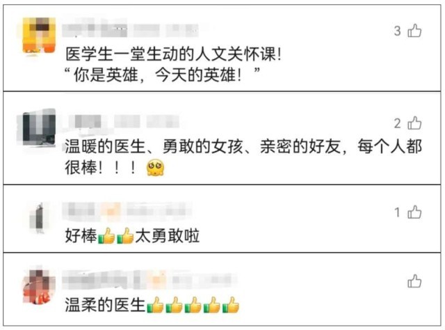 “非常好”,“我要给你个大拇指,鼓励一下”,“非常棒哦”,“你咋这么优秀呢”,“你是英雄,今天的英雄”......12月3日,西安医学院一位护理学专业的学生初次献血时感到紧张,医生在旁不断鼓励。