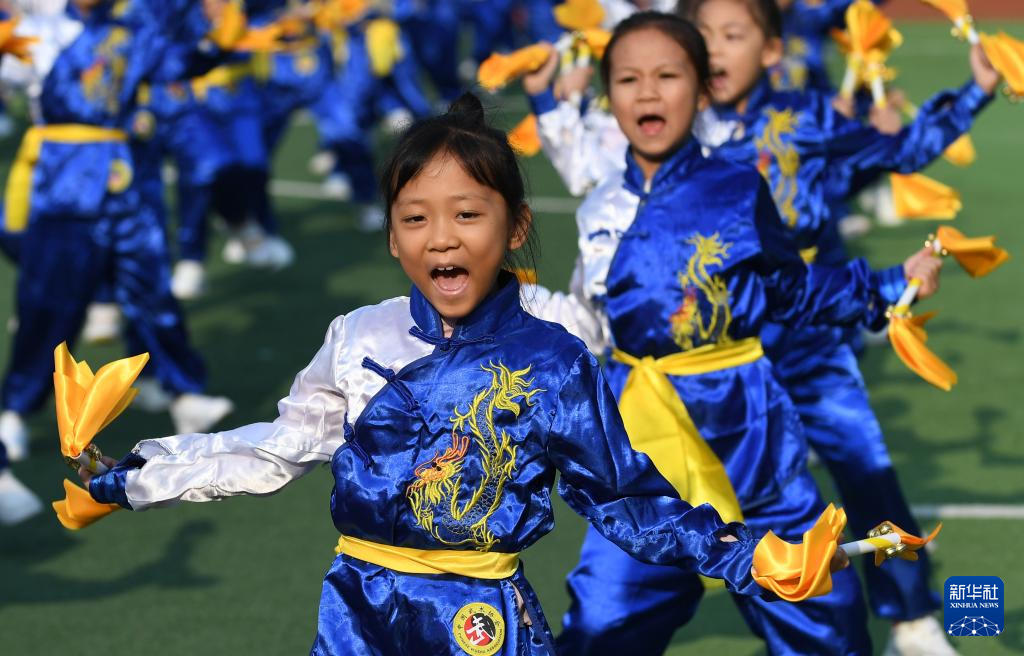 12月9日,在广西南宁市滨湖路小学教育集团滨湖校区,学生在“体育节”开幕式上表演团体操。