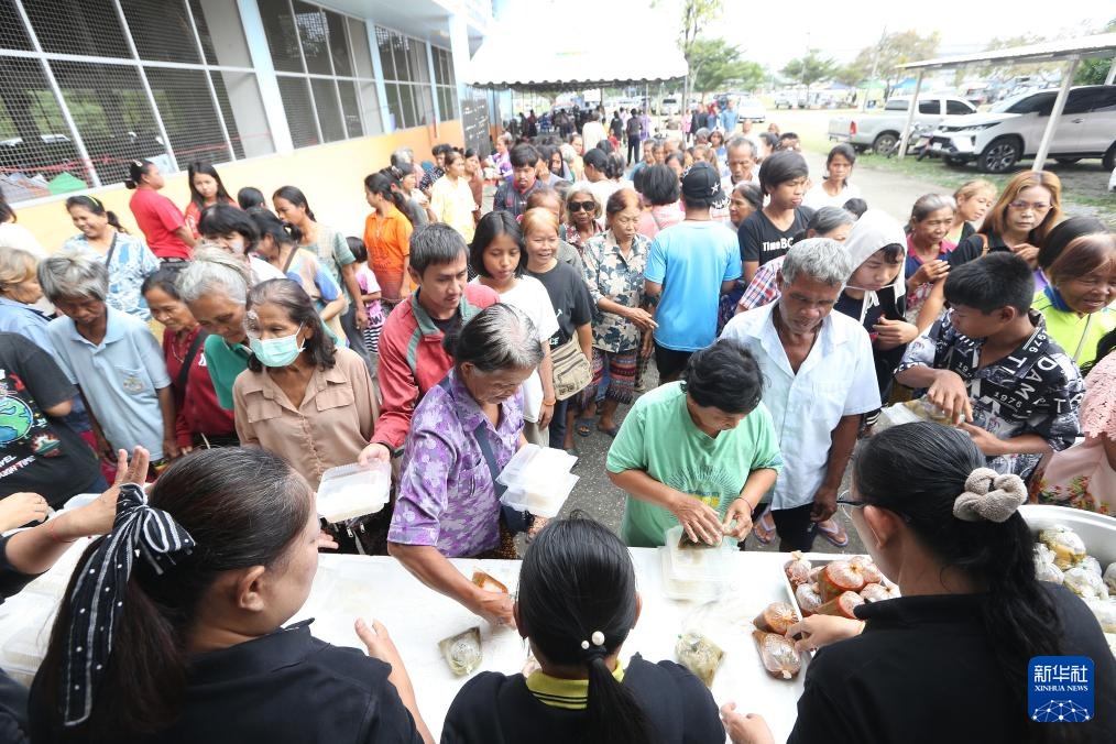 12月10日,民众在位于泰国沙缴府的一处避难所排队领取食物。