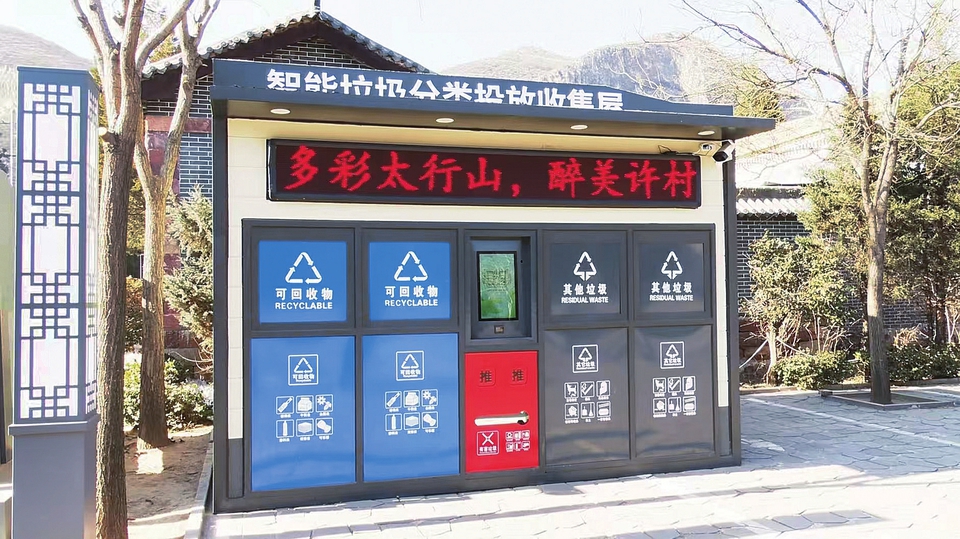 和顺松烟镇在精品示范村试点安装的“智能垃圾分类投放收集屋”。