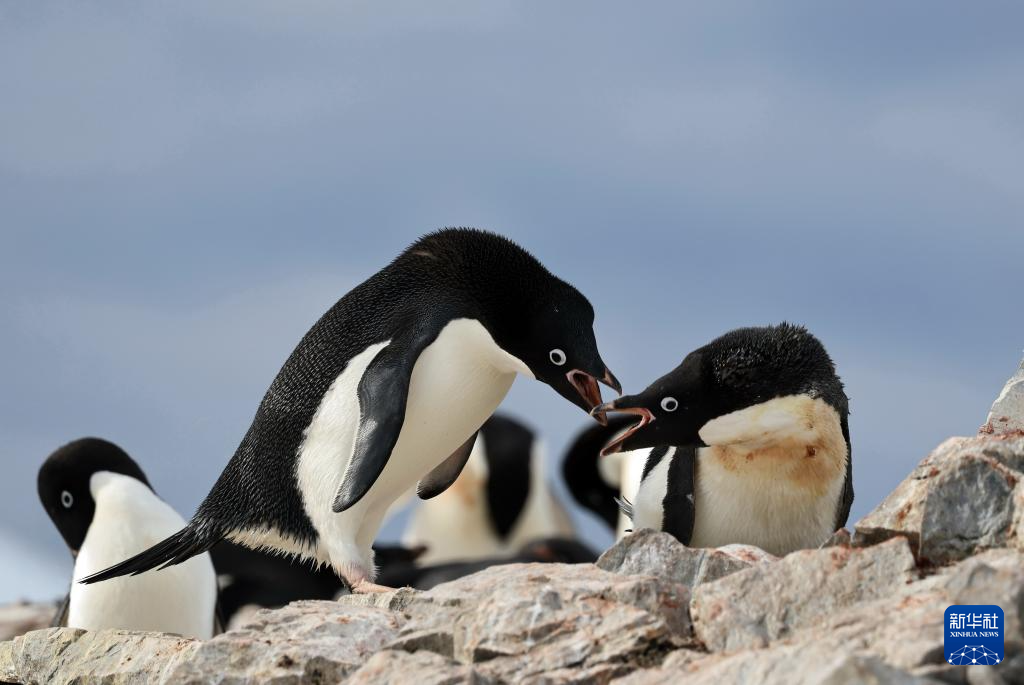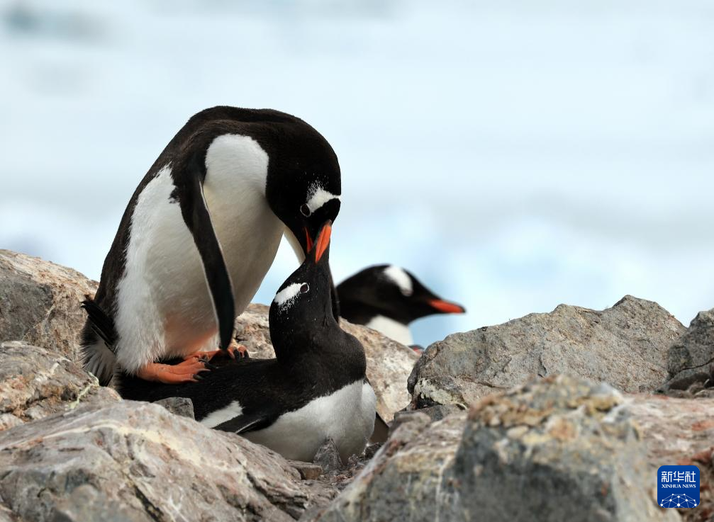 这是12月12日在南极洲拍摄的一对正在孵化幼鸟的企鹅。