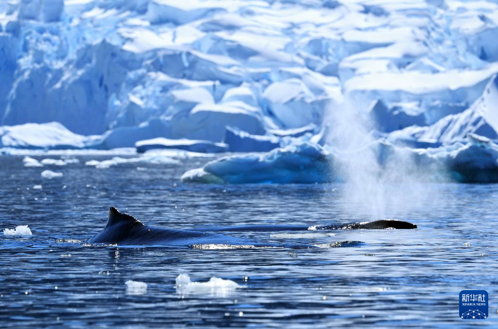 这是12月12日在南极洲拍摄的两头游弋的鲸。