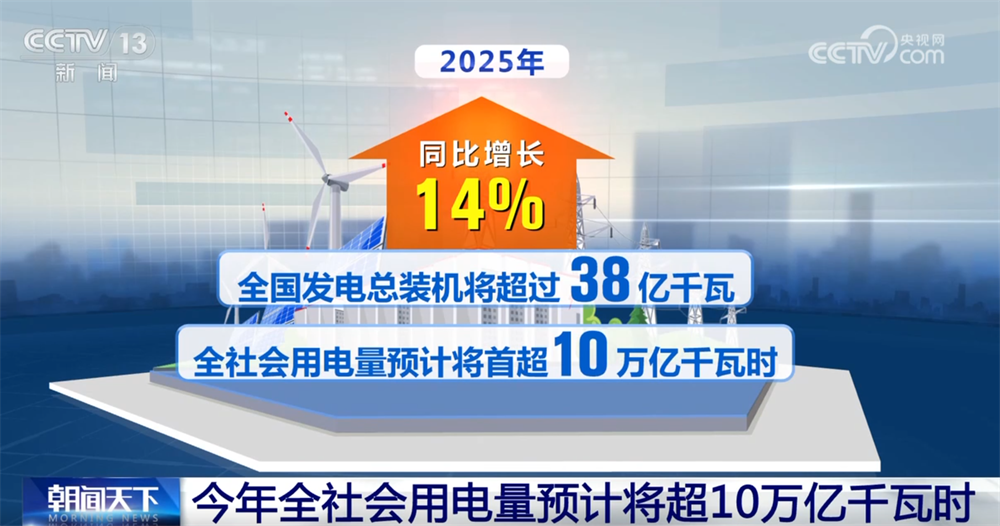 国家能源局最新预测数据显示,2025年,全国发电总装机将超过38亿千瓦,同比增长14%,全社会用电量预计将首超10万亿千瓦时。从纵向比,这是我国2015年全年全社会用电量的约两倍;从横向看,高于欧盟、俄罗斯、印度、日本全年全社会用电量的总和。