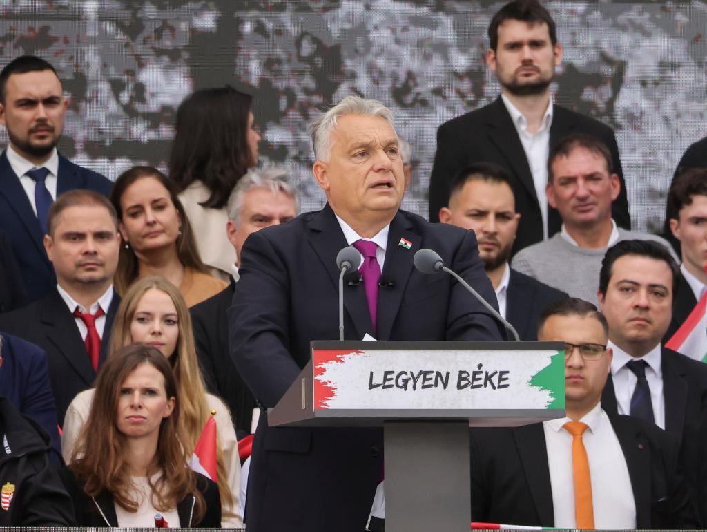 10月23日,匈牙利总理欧尔班在首都布达佩斯举行的一场集会上讲话。新华社发(弗尔季·奥蒂洛摄)