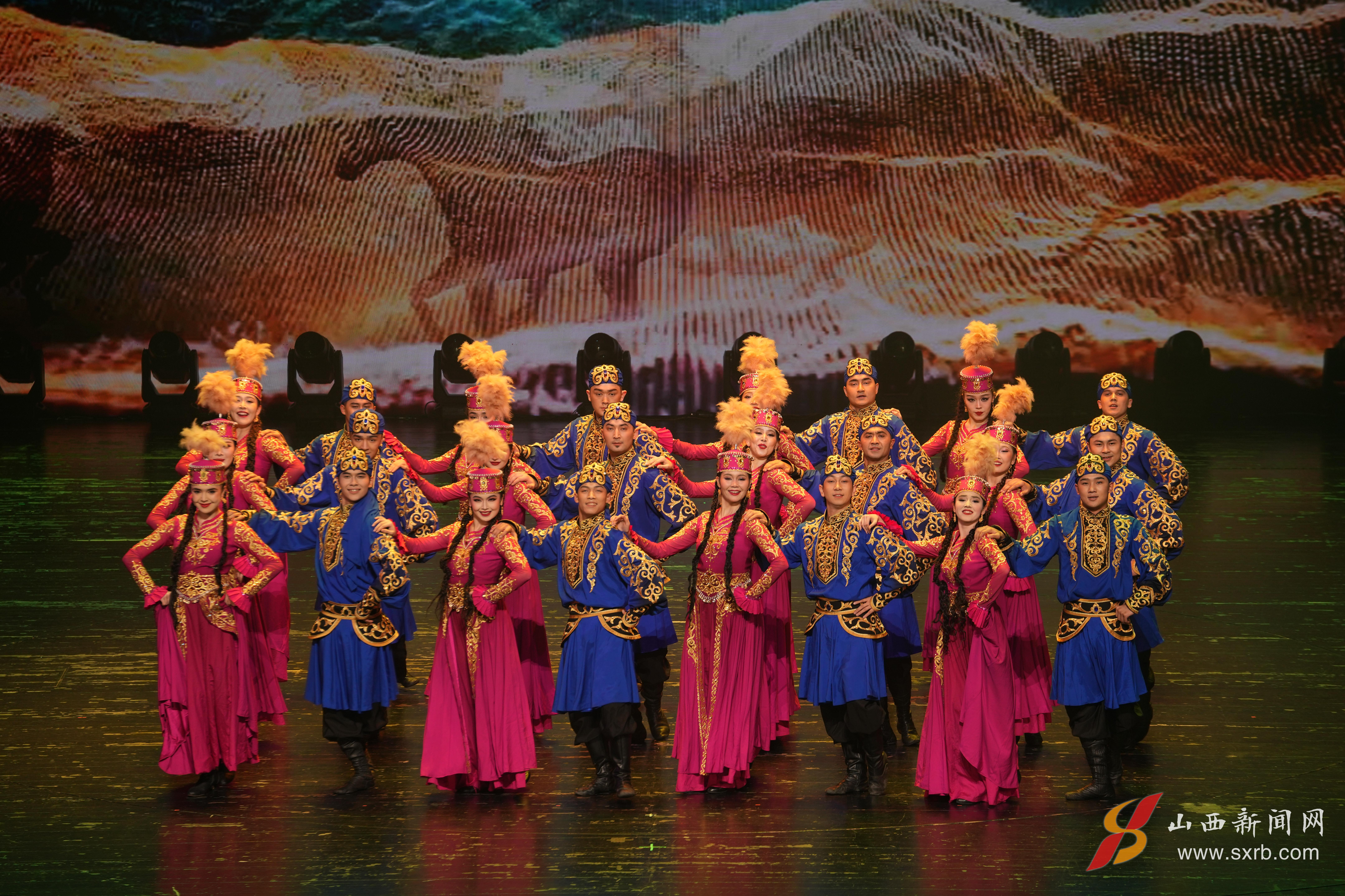 在多媒体视效的巧妙烘托下,美丽的绿洲、辽阔的草原等自然意象与各族人民的生动日常交相辉映,让观众沉浸式领略大美新疆的风物与风情。演出落幕时,掌声如潮,久久不息。太原市民王女士感慨:“仿佛亲身走了一趟新疆,既震撼又感动。”