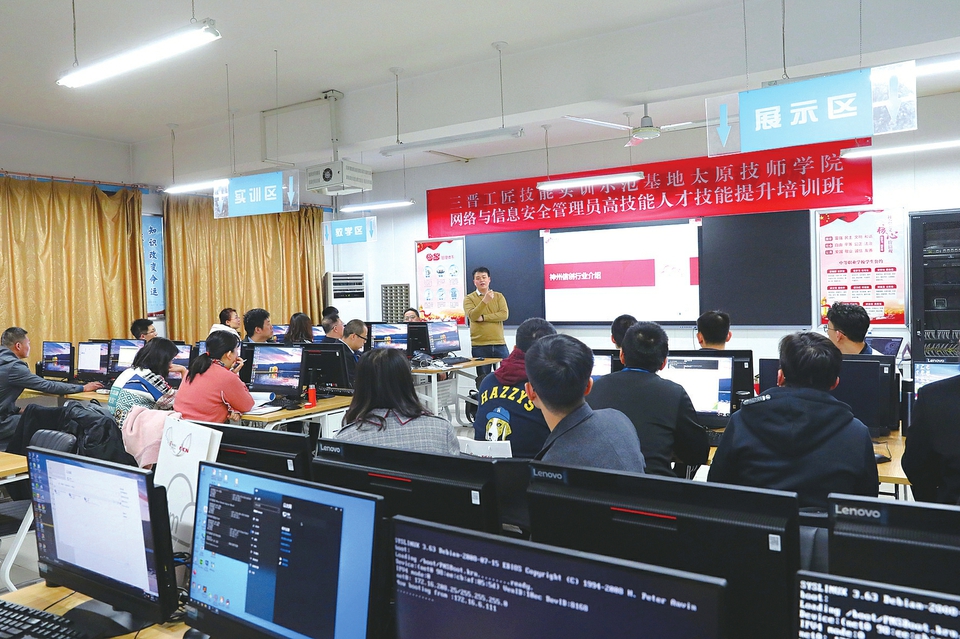 在山西工匠学院的实训车间里,机器轰鸣声与讲师授课声交织。学院第一副院长赵学军介绍,学院从企业一线聘请了54位客座工匠教师,把“课堂”直接搬到企业生产现场,实行订单式培养、场景化教学,“去年开展的‘变频器芯片级维修’培训,直指企业设备维护的燃眉之急,场场爆满。”