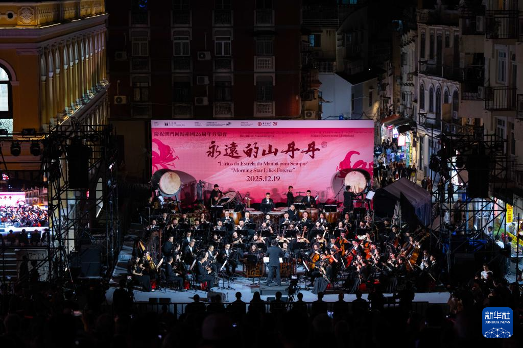 12月19日,由澳门特区政府文化局主办的庆祝澳门回归祖国26周年音乐会《永远的山丹丹》在大三巴牌坊前地举行。