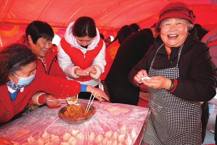 盂县举办冬至甜汤饺子宴,辖区二百余名居民欢聚一堂。程瑜摄