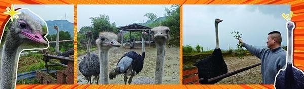 “鸵鸟抗病能力强,不容易生病。农户代养,只要按照饲养规范,鸵鸟不需要耗费太多人力。”范志亨介绍,鸵鸟养殖只对场地有要求,不能小范围圈养。鸵鸟喜欢奔跑,鸵鸟奔跑起来时速最高能到70公里,跑起来可能刹不住。基地里曾经出现过两次鸵鸟冲垮砖墙的事,“全村人帮忙抓鸟”。