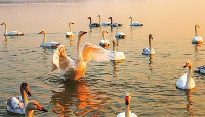 >>运城圣天湖景区:定时投喂助力大天鹅安然越冬