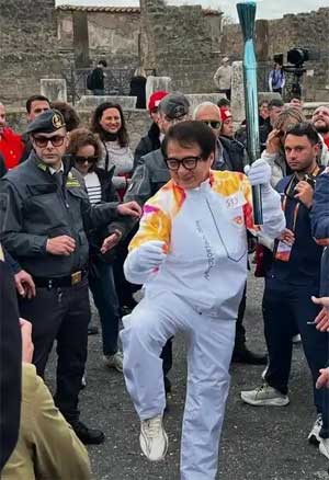 近日,71岁的成龙在意大利庞贝古城传递冬奥圣火,即兴表演《醉拳》展现东方武术魅力。他手持熊猫玩偶与火炬合影,让奥林匹克精神与中华文化在千年古迹中交相辉映:“火炬不仅承载火焰,更传递着和平与爱的信念。”这场跨越时空的对话,见证着文化传承的永恒力量。
