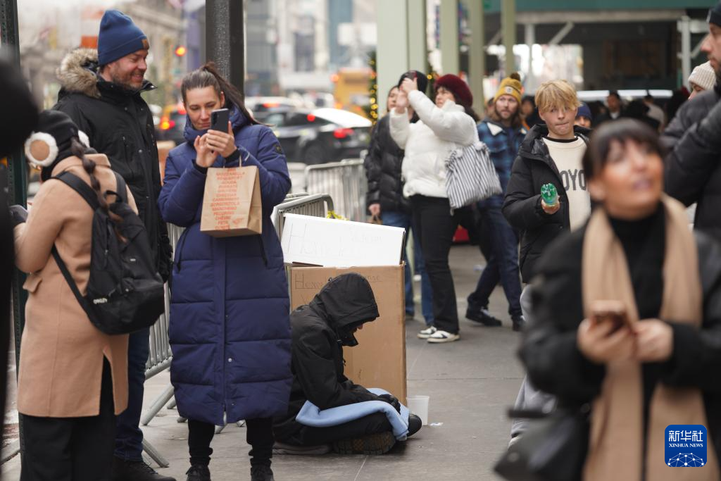 时值岁末,在美国纽约充满节日气氛的街头,时常可见无家可归者和其他寻求救助的人们。