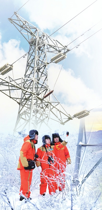 图⑥为国网山西超高压输电公司“两队”队员开展防覆冰特巡。杜衡摄