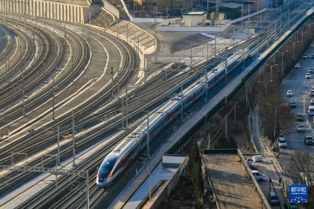 2022年1月21日,京张高铁列车经过居庸关隧道,从北京驶向太子城。新华社记者 邢广利 摄