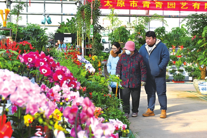 12月30日,市民在太原市杨家峪花卉市场选购花卉迎新年。王若渊摄