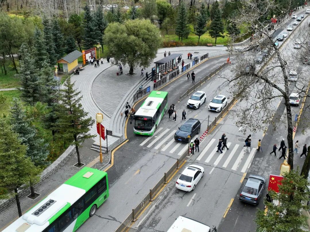 为应对高峰客流、保障游览品质,五台山景区以“智治”为核心,全年严格落实“限量、预约、错峰”机制,对来山游客及车辆实行24小时昼夜预约管控。通过科学设定每日预约上限、本地车辆单双号限行等精细化措施,从源头有效平衡了车流与人流。在交通组织上,景区交警大队创新实行“一点一策、分时管控”,并将责任层层落实至各线、段、点,形成了高效联动的立体管控网络。同时,智能化手段为高效运转提供了有力支撑,智能监控系统实现了对核心交通路线、主要停车场及接驳站台的全时全域覆盖与动态监测,为科学调度提供了精准依据。在“五一”“国庆”等重要假期节点,景区提前投入充足的公交运力与应急车辆,各站点工作人员全天候值守,形成了“监测-调度-转运”的闭环,有力保障了大客流期间交通主动脉的畅通无阻与游客换乘的高效有序。
