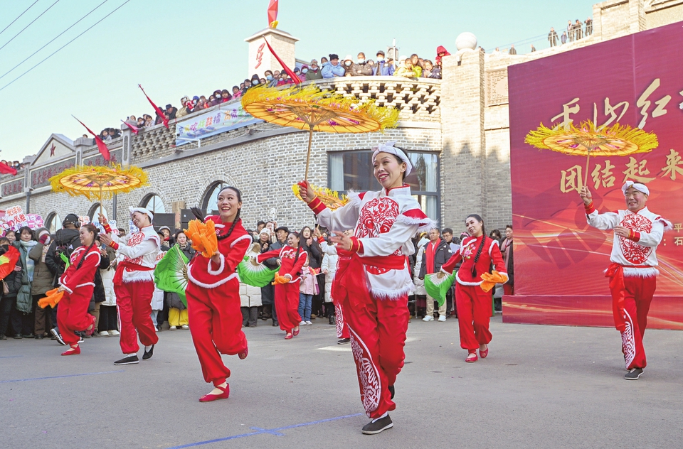 1月2日,在河北省石家庄市平山县岗南镇西岗南村,当地群众扭秧歌过新年。