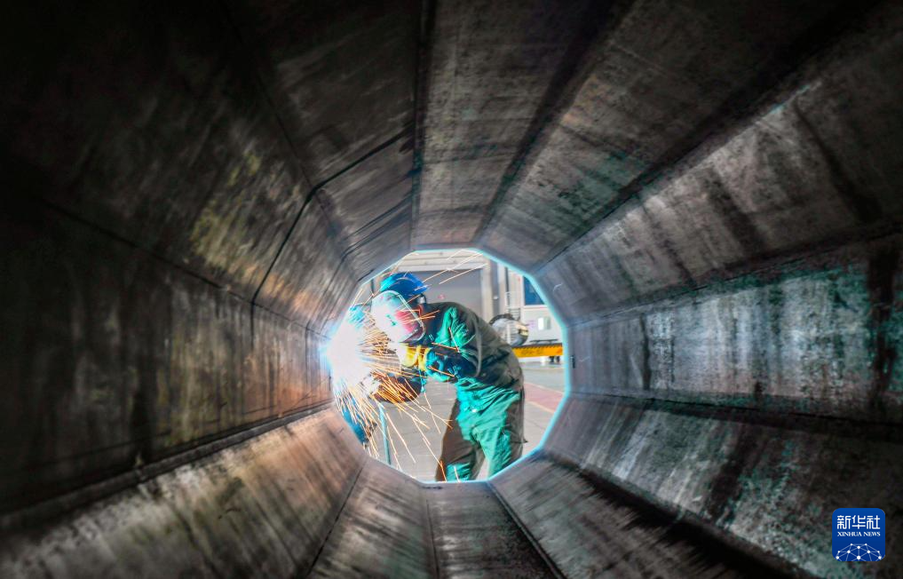 1月4日,工人在河北省唐山市海港经济开发区一家铁塔制造企业车间工作。