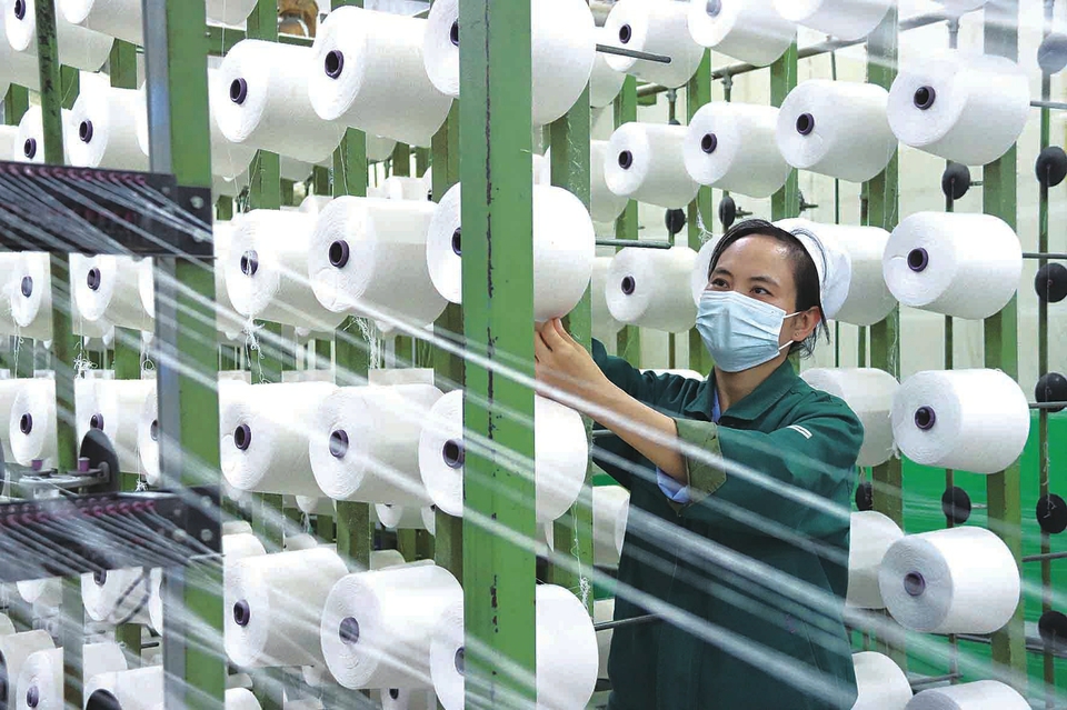 1月4日,山西绿洲纺织有限责任公司内,工人正在赶制出口订单。新年首个工作日,该公司开足马力加紧生产,确保完成订单任务。