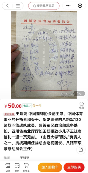▲孔夫子旧书网上的王廷弼写给儿子王迁唐的书信