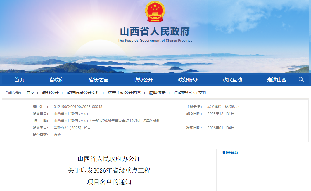 近日,山西省政府办公厅印发通知,公布2026年省级重点工程项目名单,能源转型、产业升级、科教人才、基础设施、社会民生五大领域共629个项目入列。通知要求,要强化服务保障,协调落实建设条件,做实项目调度推进,确保项目顺利实施。