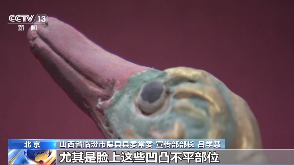 山西省临汾市隰县县委常委 宣传部部长 吕学慧:黄金打造成金箔纸,就是A4纸的十二分之一,一点一点贴在这些塑像的身上,尤其脸上凹凸不平的部位,几百年了还依旧是那个平整度和光泽度。