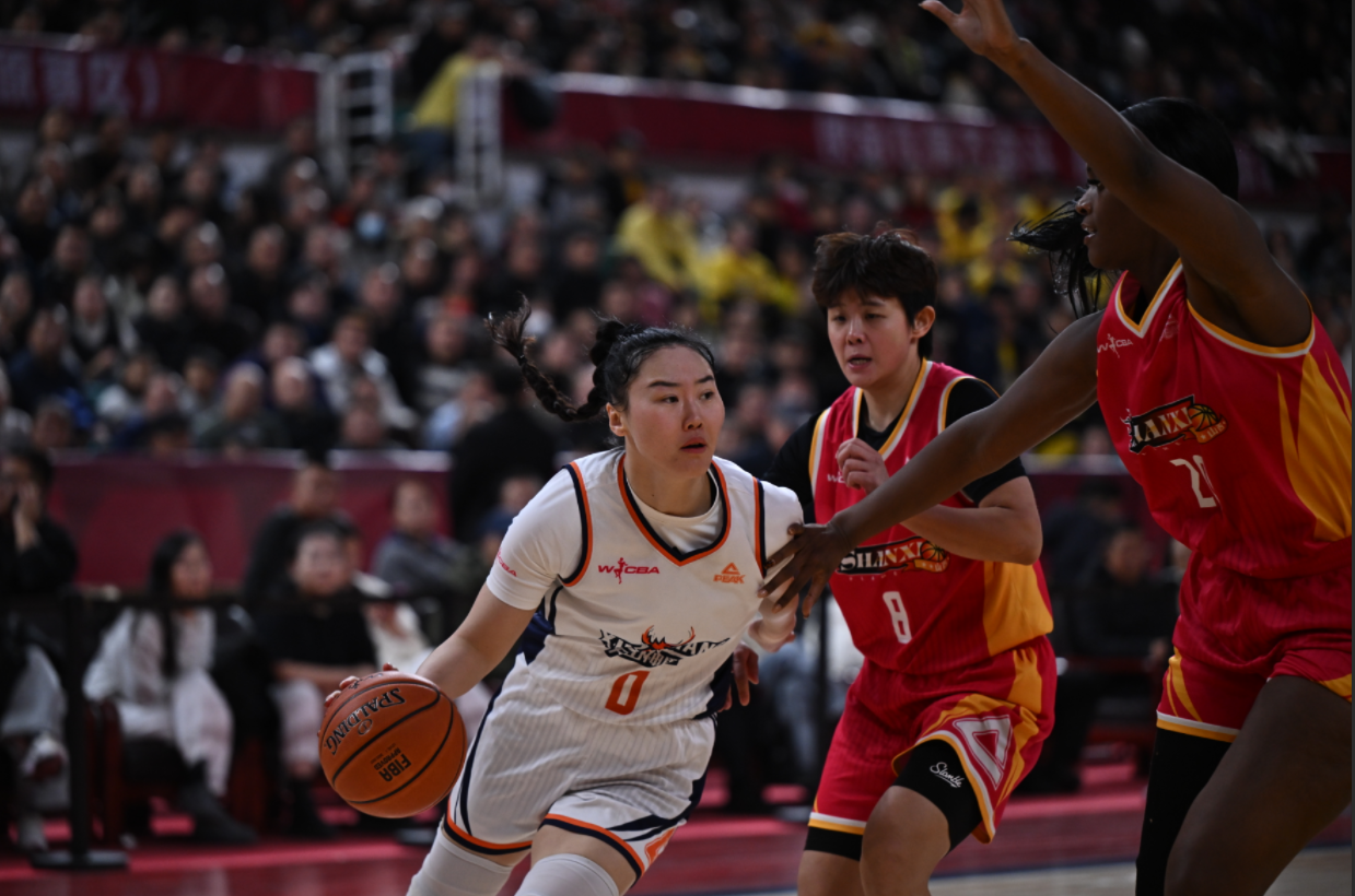 ▲武桐桐(白)对阵故主山西女篮