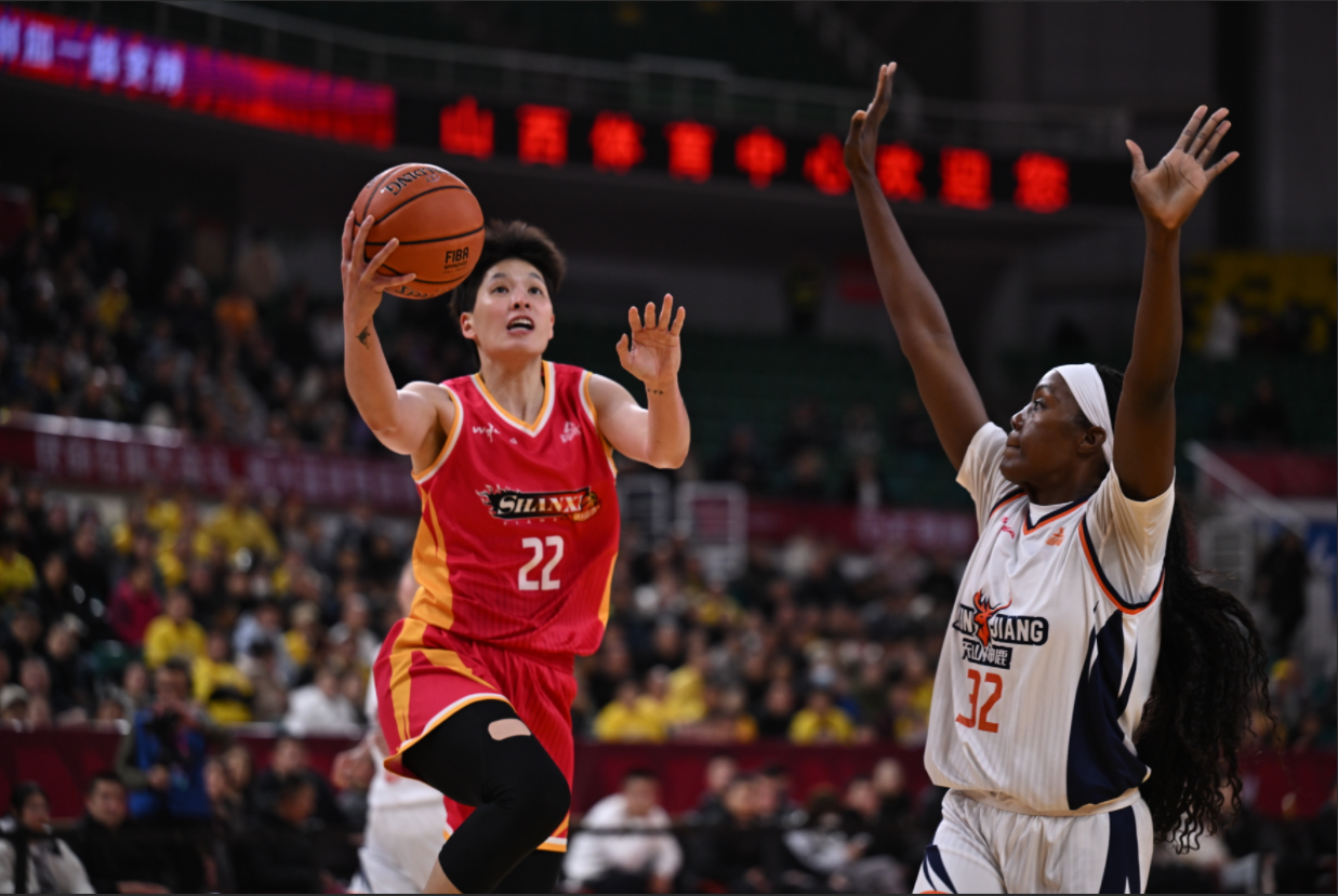 ▲山西女篮球员林育庭(红)本场得到8分11次助攻