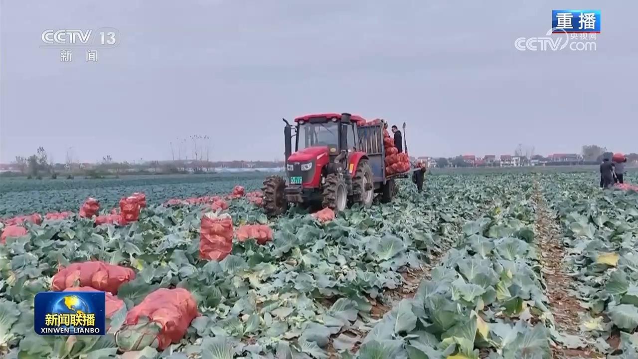 湖北嘉鱼潘家湾镇十里蔬菜长廊里,甘蓝菜喜获丰收,村民们正忙着采摘、销售。2024年11月,习近平总书记来到这里考察,勉励大家把蔬菜种植这个富民产业做好,菜农叶祥松当时就在场。