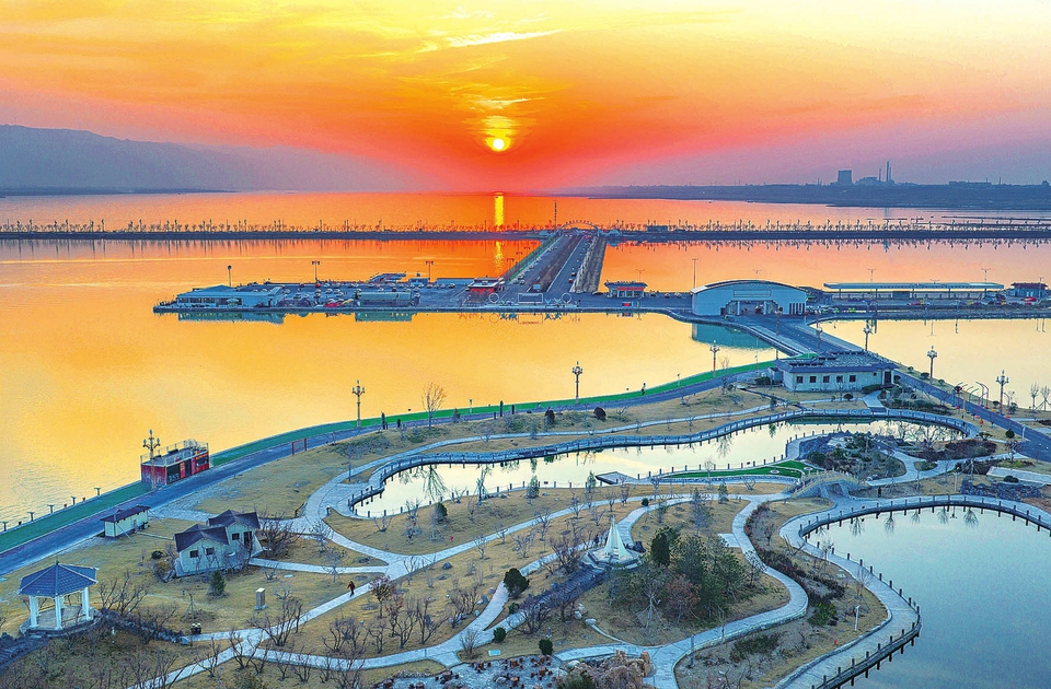 1月11日,运城市七彩盐湖景区,湖面宛如“天空之镜”,在阳光映衬下美不胜收。当地围绕“盐湖+”模式,培育新业态,打造“盐梦长廊”文旅综合体、创建国家级旅游度假区,推动从单一观光地向综合性旅游目的地转型。