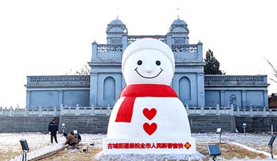 >>巨型雪人在大同古城惊艳亮相