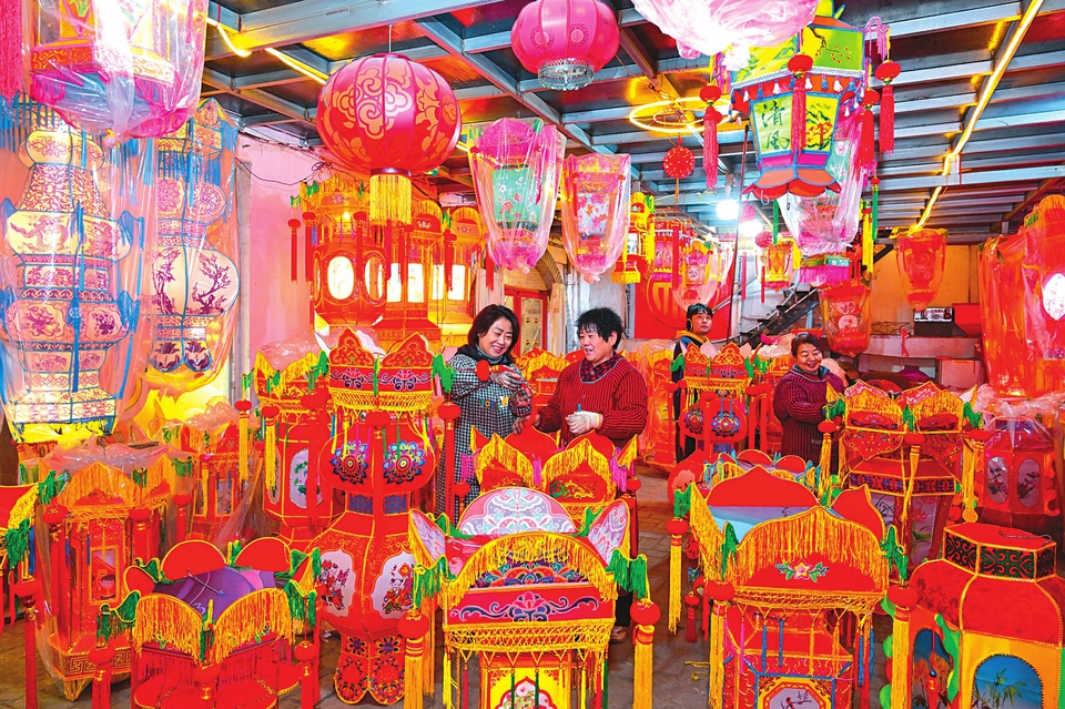 1月15日,长治市上党区东申家庄村工艺花灯厂内,员工正在赶制花灯订单。随着春节临近,各地花灯订单纷至沓来,该厂开足马力加紧生产,力求按时交付。