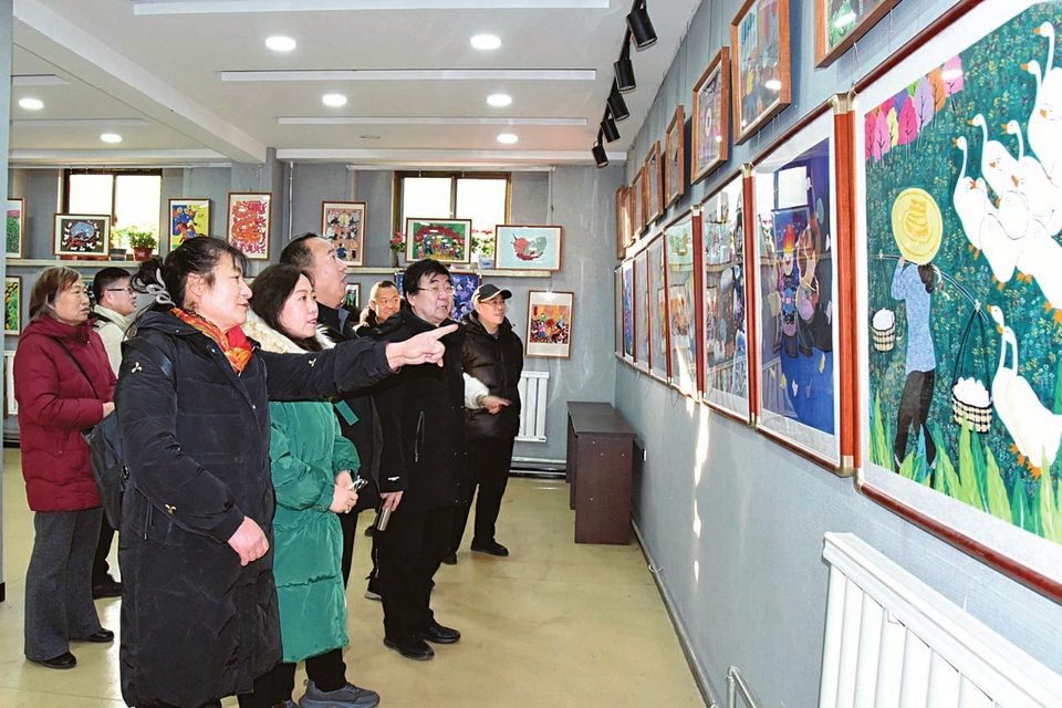 1月5日,文水县2025年农民画培训成果作品展在县文化馆举行。作品紧扣乡村生产生活、生态建设与乡村振兴主题,承载着对土地的热爱与新时代青年的文化担当,色彩浓烈似火、题材质朴鲜活,吸引众多书画爱好者参观。