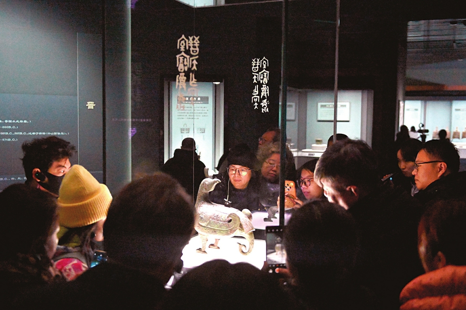1月15日,山西博物院内,游客驻足文物展品前,在凝望中与历史对话,感受三晋文化深厚底蕴,尽享文博魅力。本报记者范文静摄