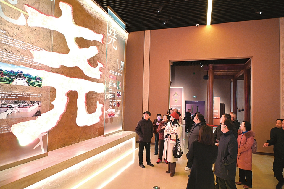 1月9日,游客在襄汾县陶寺遗址博物馆参观。该馆运用数字化复原、现代化展陈与实物展示等手段,展出陶寺遗址出土的陶器、玉器等珍贵文物,让游客近距离感受中华文明的魅力。梁生仁摄