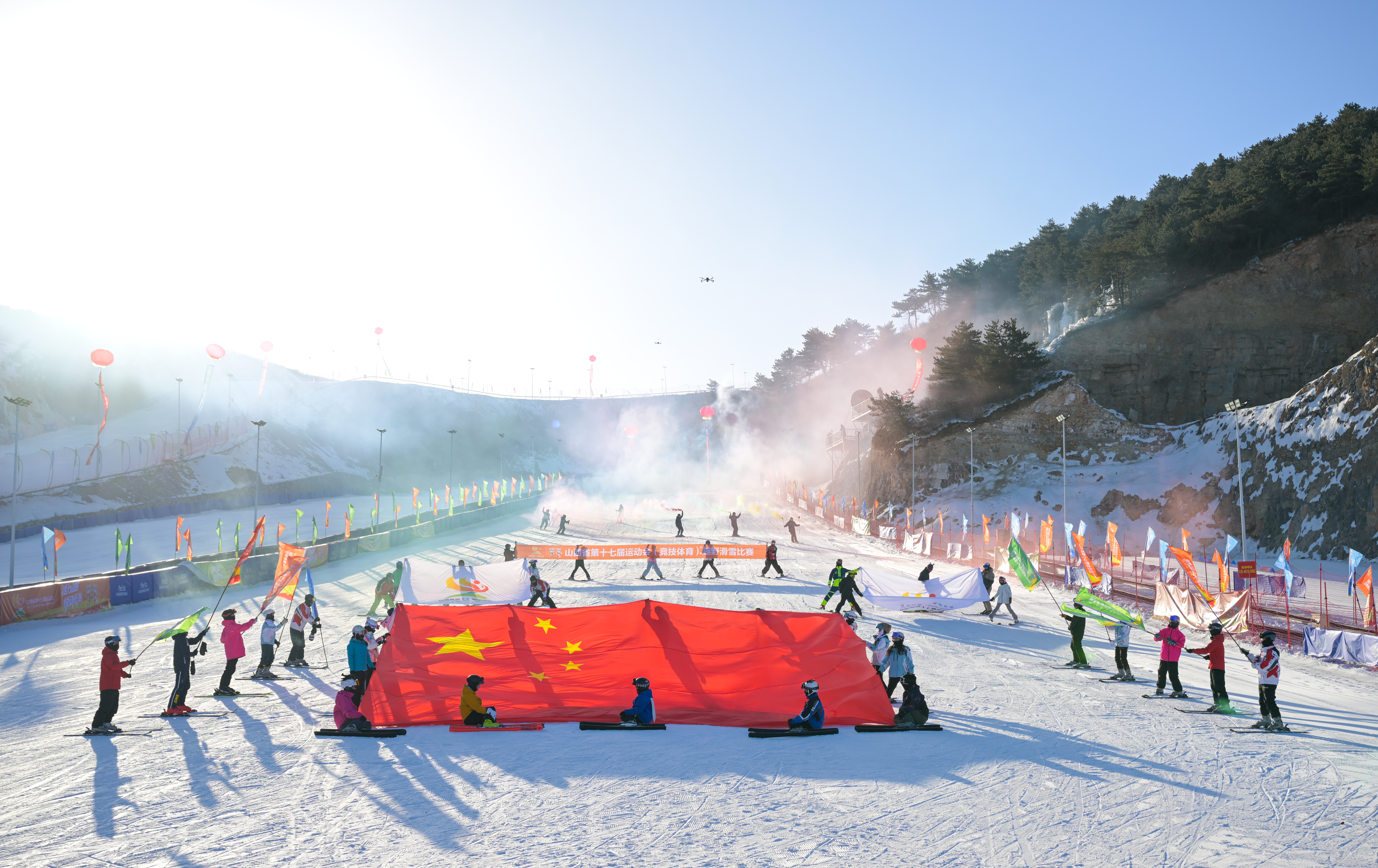 当日上午,威风锣鼓、动感排舞、传统武术等特色暖场表演轮番上演,迅速点燃现场氛围。简短热烈的启动仪式后,全场目光聚焦蜿蜒雪道,静待赛事开启。