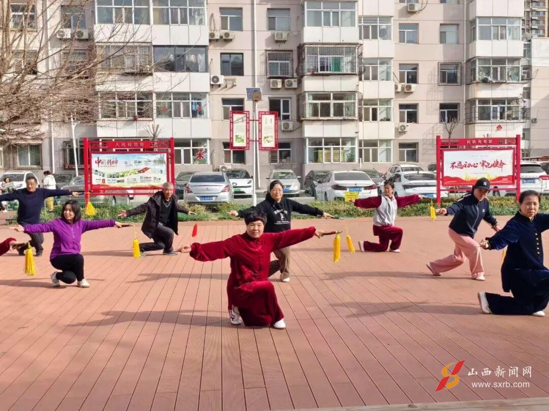 清晨七点的太原市尖草坪区汇丰苑社区健身广场,十余位中老年人伴着舒缓的音乐凝神静气、舒展拳脚,起势如行云流水,收势似山岳沉稳,一招一式间尽显太极的刚柔之美。