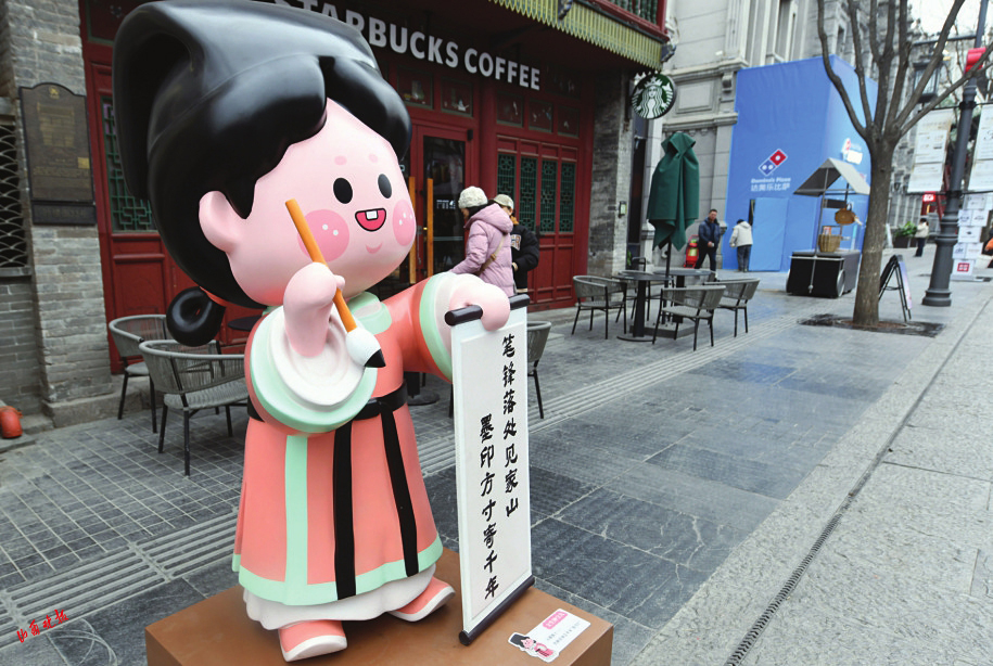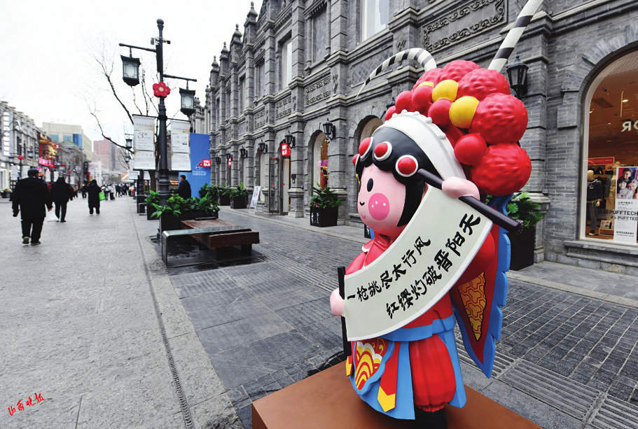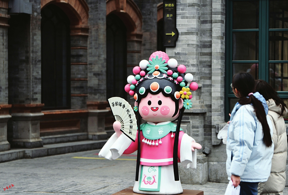 1月14日,太原钟楼街,一组“钟宝儿”卡通人物造像给这条“千年古街”增添了不少晋味。4个“钟宝儿”灵感源于晋剧表演艺术家“说书红”、晋剧《穆桂英挂帅》人物穆桂英、晋剧《打金枝》人物升平公主,分别以文生、刀马旦、花旦的戏剧形象呈现,让游客在观赏之余,也能了解山西的传统戏剧文化。