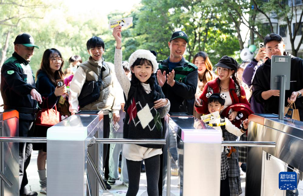 1月17日,小朋友持票进入福州熊猫世界。