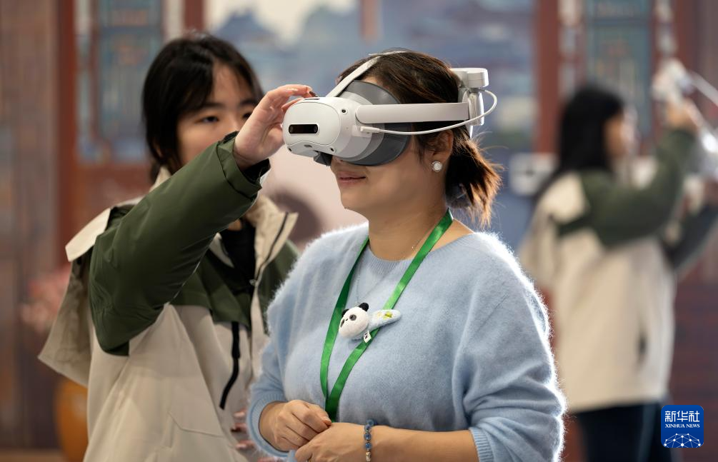 1月17日,观众在福州熊猫世界体验VR设备。