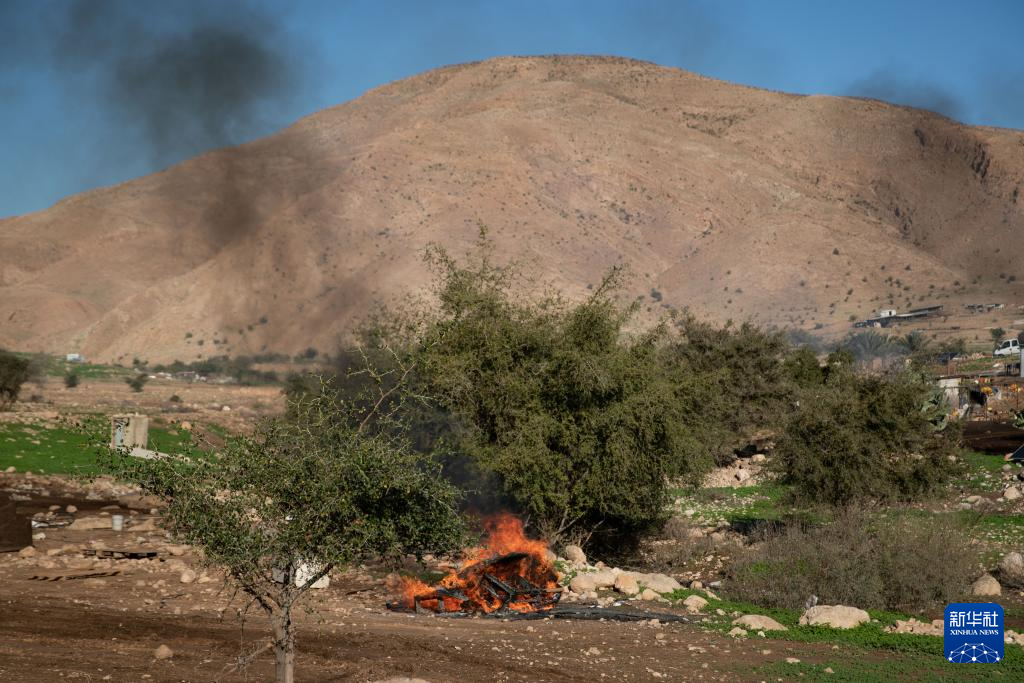 1月16日,在约旦河西岸拉斯艾因奥贾村,贝都因人焚毁带不走的物品,避免被以色列犹太定居者重新使用。