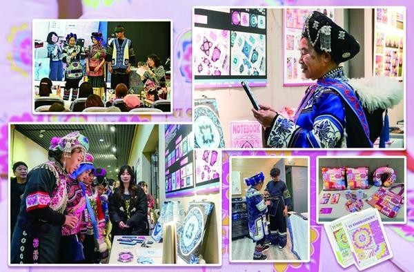 产业的蓬勃发展,也推动了高校与地方之间的深入合作。2025年6月,云南师范大学艺术学院与武定县彝绣协会及相关企业合作,挂牌共建“教育研究与实践教学基地”和“教学研究实习与就业基地”,并邀请非遗代表性传承人普玉珍、郭晓艳等进校园,举办“彝绣非遗展示与体验”系列活动。这些举措让学生能够近距离接触非遗,也为产业输送了新鲜血液。