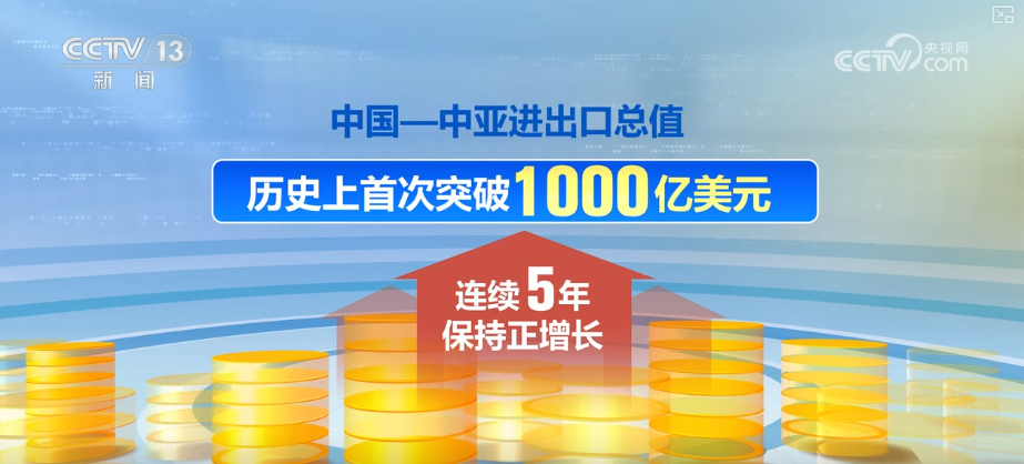 贸易规模再创新高。中国—中亚进出口总值历史上首次突破1000亿美元大关,连续5年保持正增长。中国首次跃居中亚各国第一大贸易伙伴。