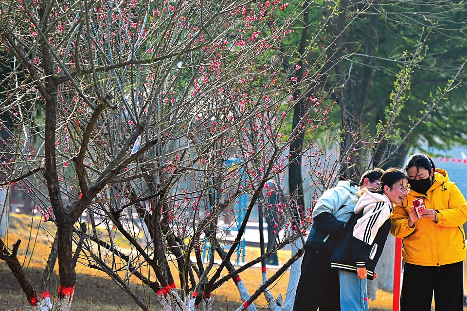 1月17日,市民在垣曲县舜乡城郊森林公园观赏梅花。该公园总面积1500亩,累计栽植各种树木达12万余株,通过多年增绿添彩,形成了春看桃花、夏观牡丹、秋品红叶、冬赏梅花的四季美景。