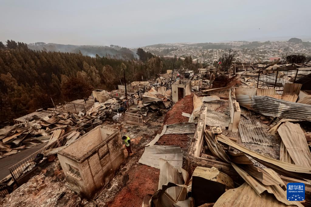 这是1月19日在智利比奥比奥大区彭科市拍摄的火灾受灾区域。